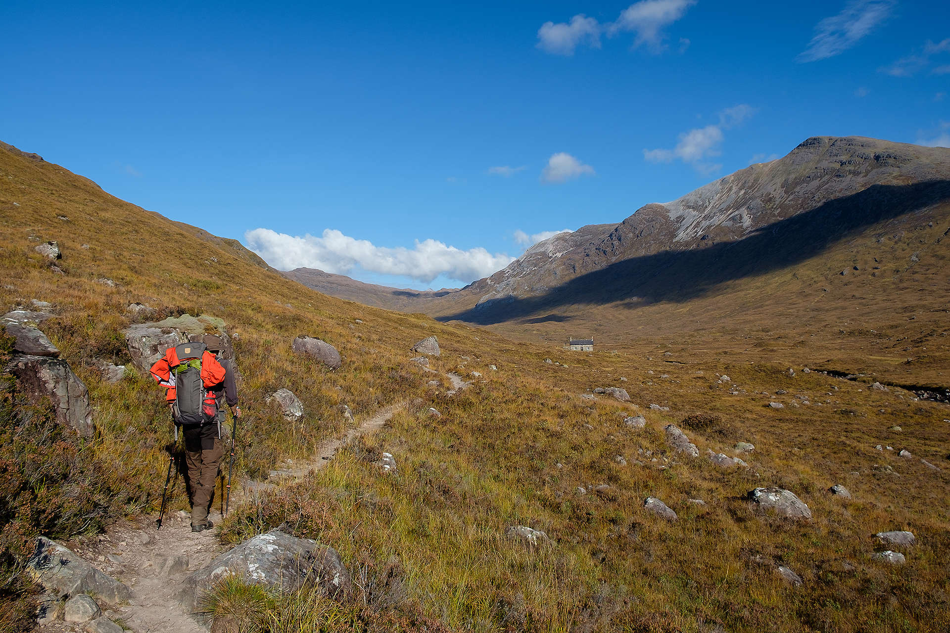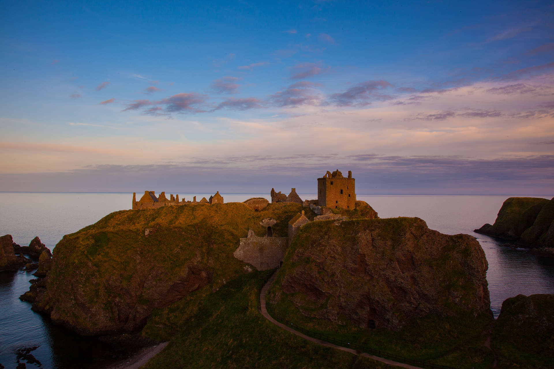 Von kosmopolitischen Städten und geschichtsträchtigen Orten über liebliche Hügellandschaften, einsame Heidemoore und schillernde Inselwelten bis hoch hinaus auf wilde Felsgrate. Er wandert hunderte Kilometer durch die einsame Wildnis der Highlands, über nebelverhangene Berge, durch tiefe Glens und entlang den Ufern unergründlicher Lochs bis er weiße Sandstrände vor dem azur-blauen Ozean erreicht und an steilen Klippen in der Brandung des Nordatlantiks Wasserfälle nach oben fließen sieht. Inmitten von geheimnisvollen Steinkreisen, noch älter als das berühmte Stonehenge, in gewaltigen Kloster-Ruinen und Burgen lauscht er dem Echo bewegter und stolzer Geschichte.